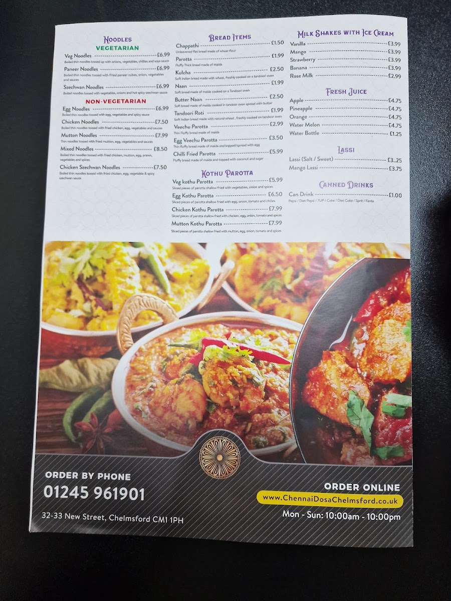 Overall, Chennai Dosa provides an exceptional dining experience with a focus on flavorful, traditional South Indian cuisine. Whether you're a regular or a first-time visitor, the Chennai Dosa Menu offers something for everyone, making it a must-visit for anyone craving authentic Indian flavors in Chelmsford.